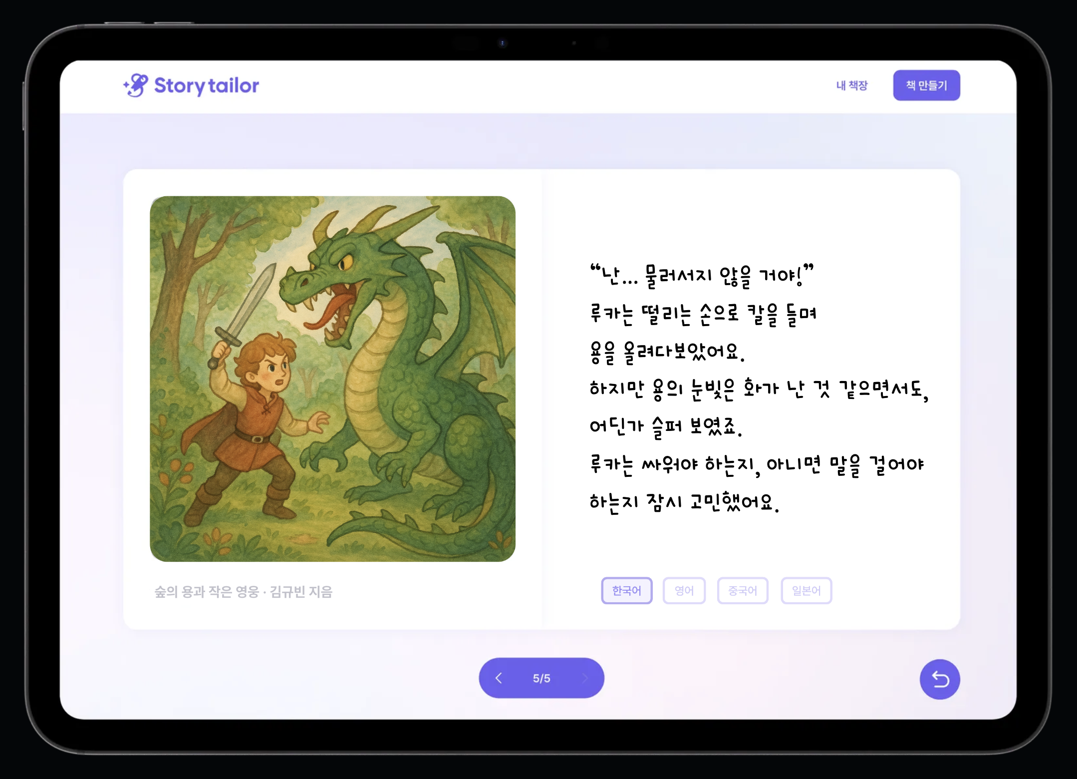 StoryTailor is an interactive creative education platform where AI automatically generates fairy tales, illustrations, and voice narration based on children's drawings and stories. Beyond simple content consumption, it provides a new educational experience where children's creations become records of growth.